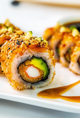 Experience a burst of flavors with this Dragon Roll recipe, featuring crispy tempura shrimp, creamy avocado, and a sweet drizzle of eel sauce. This visually stunning sushi roll is perfect for impressing guests at gatherings or enjoying a cozy night in. Easy to make and customizable to your taste, each bite offers a delightful blend of textures that will leave everyone craving more.
